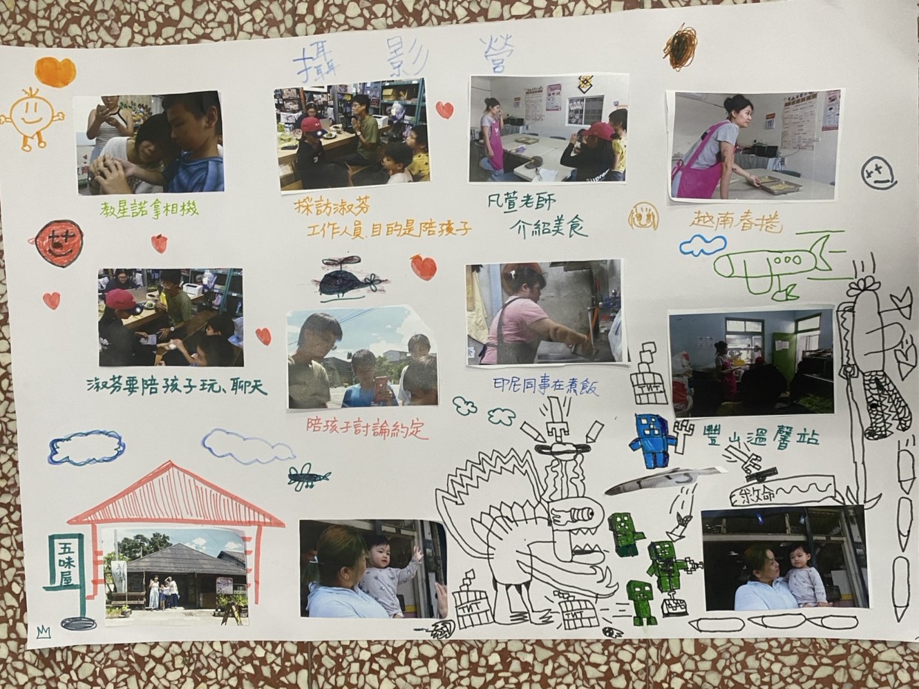 課程共分為好幾堂,孩子們從攝影基礎出發,學習構圖、觀察與主題發想。有人將自己拍攝的照片設計成海報,有人則挑戰拍攝採訪影片。🎬