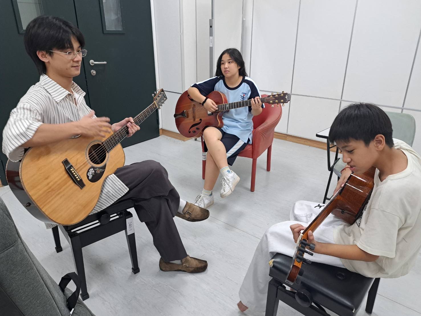 孩子們分組、分配樂器,開始進入練習階段。老師也提醒大家,學會分辨「前奏、主歌、副歌」,特別是副歌——那是整首歌最有力量的地方。✨