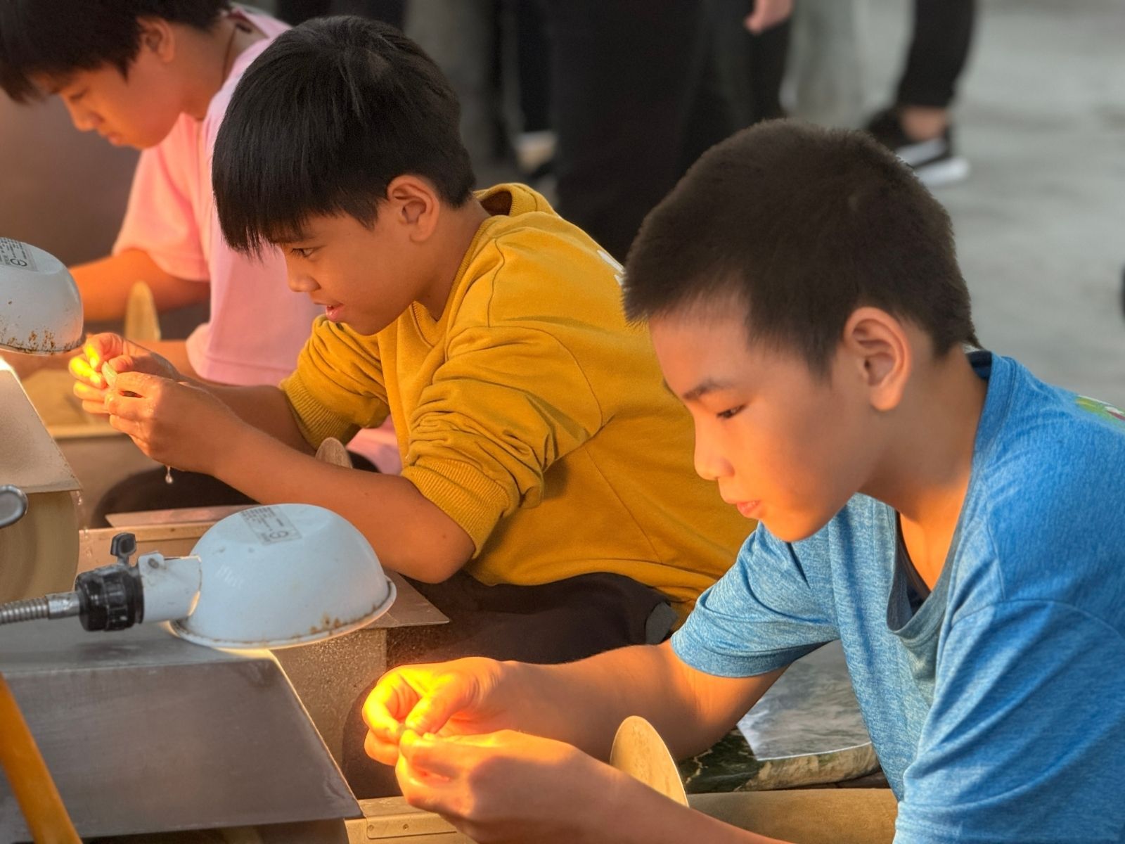 一大早,孩子們首先走進如豐琢玉工坊聆聽玉石導覽,接著親手做左手香香膏🌿,磨玉石項鍊✨。每個人都超級專心又投入,當作品完成的那一刻,臉上瞬間亮起來,滿滿成就感爆表!