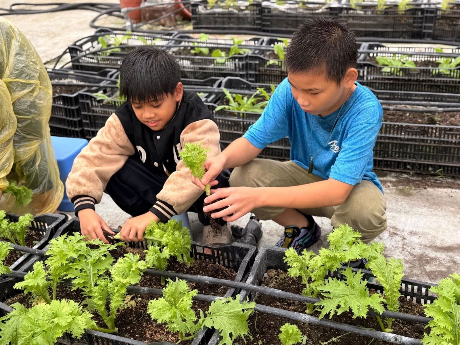 午休後,大家到不彎腰體驗農園親手採芥末菜,還認識溫室感知器的運作🤖。在農園中,孩子們第一次把「科技 × 農事」連在一起,變身成小小科學家,直呼:「原來種菜這麼酷!」