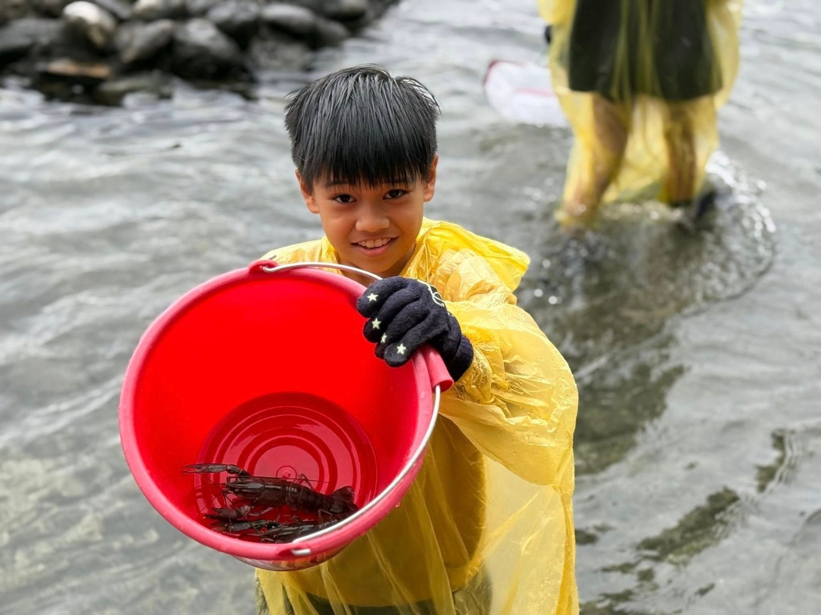 行程的最後,孩子換上雨鞋衝下水,一個個化身抓蝦高手!雖然下著雨,卻一點也澆不熄孩子們的熱情。笑聲與歡呼迴盪著,讓冬季豐田的空氣都變得暖呼呼。