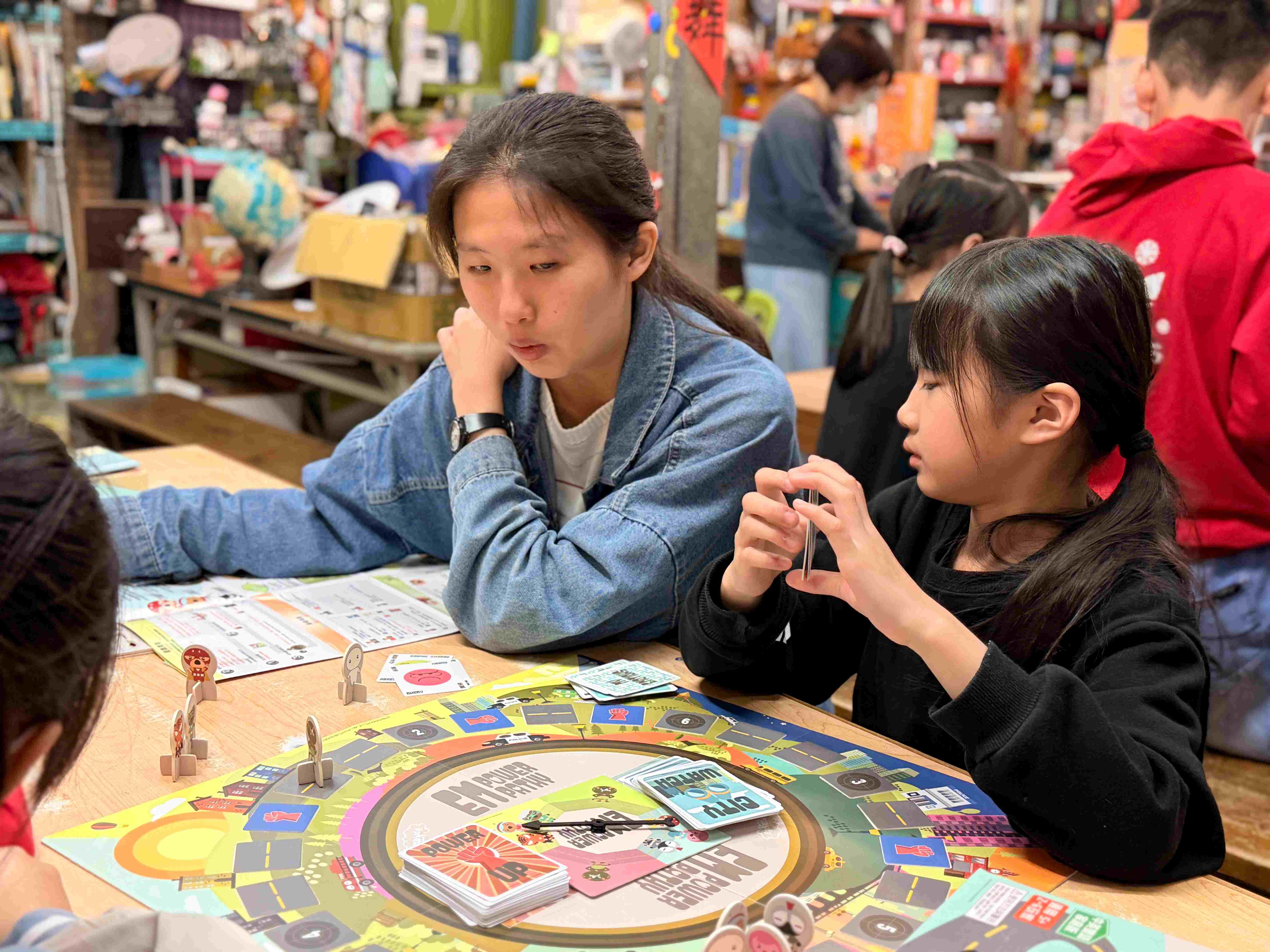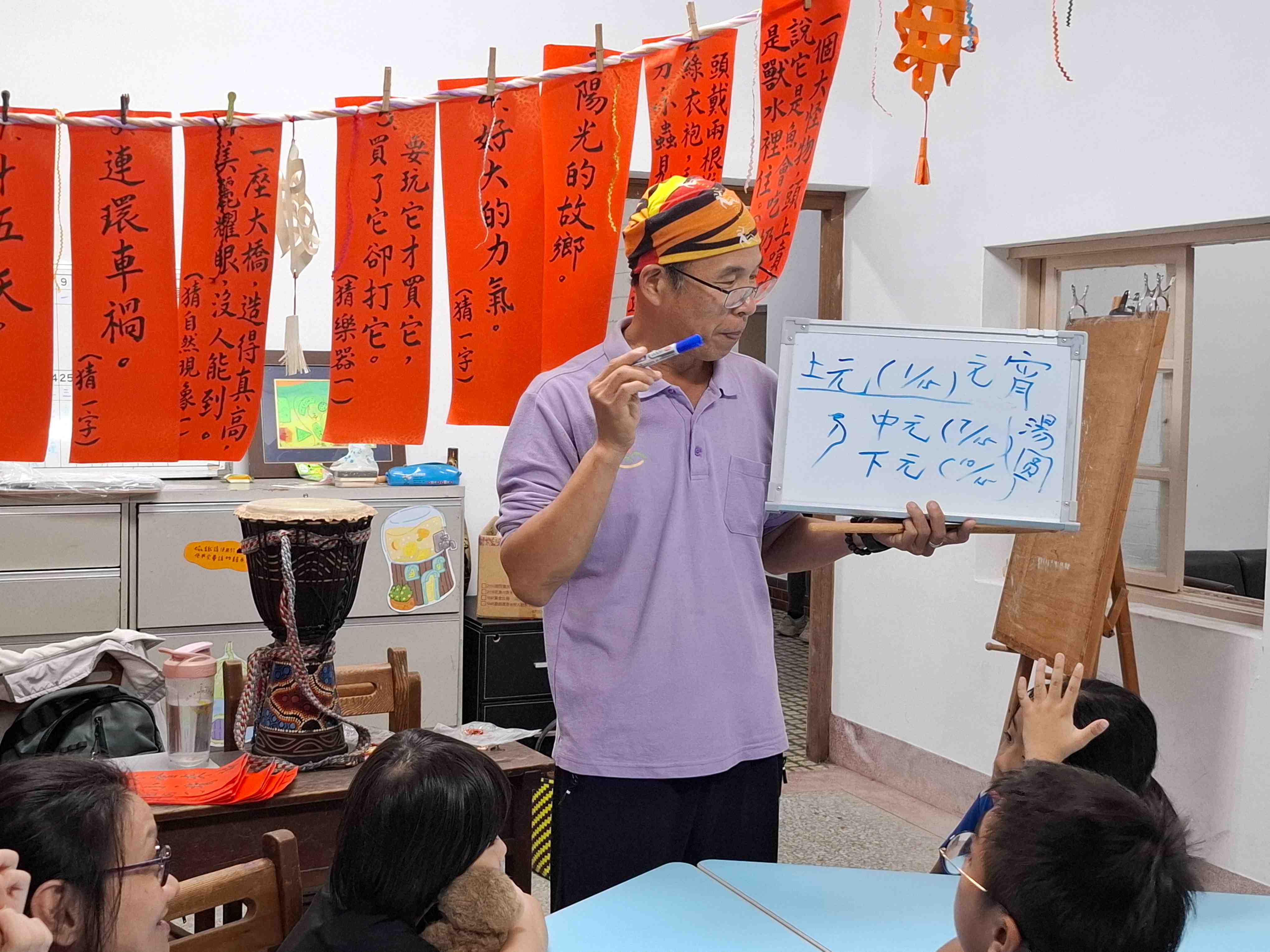 孩子們穿梭其間,和樹人老師一同閱讀、一同討論,樹人老師為孩子們揭開謎底與背後文化的涵義。孩子們非常認真地參與,積極舉手回答問題。