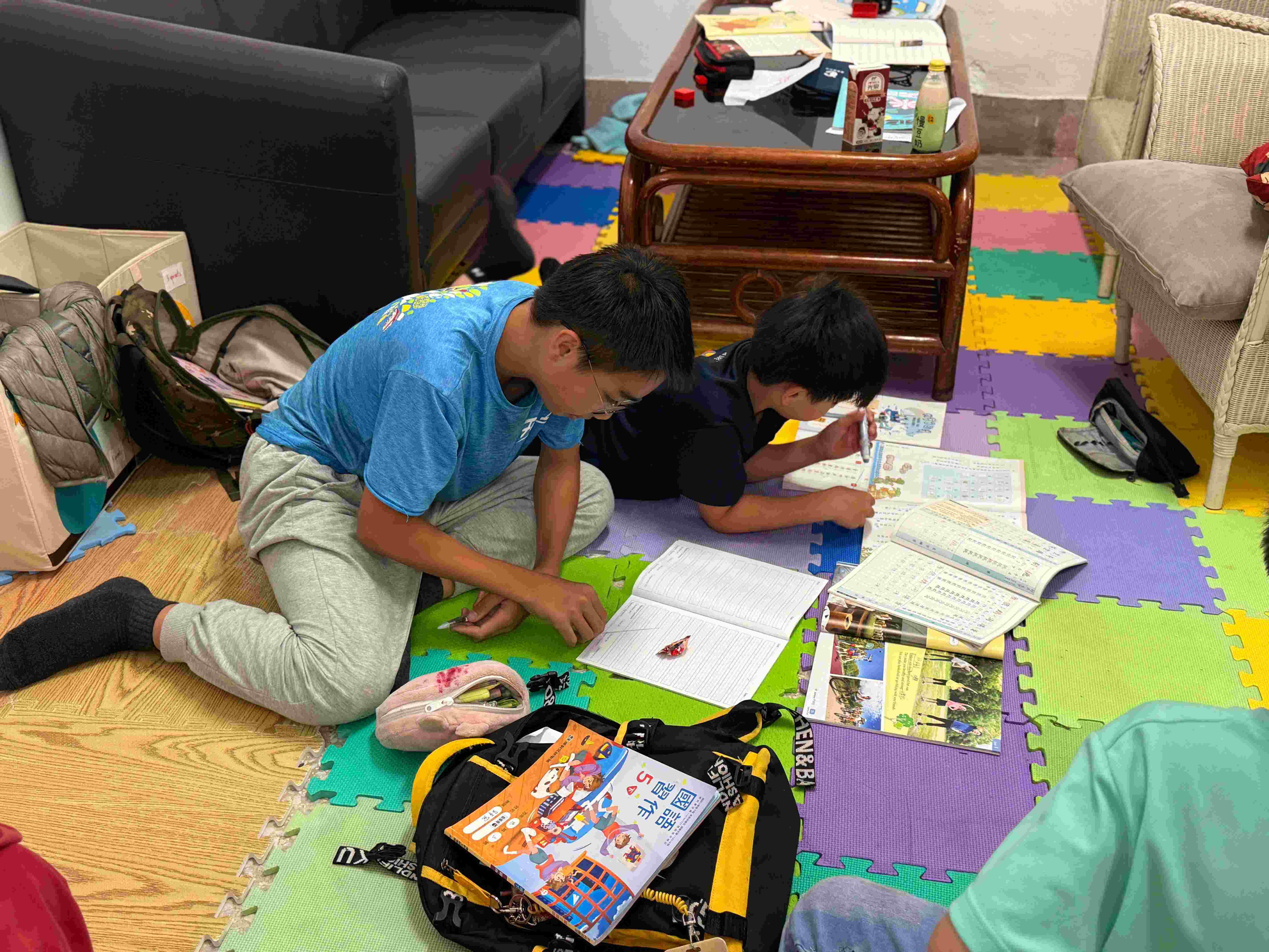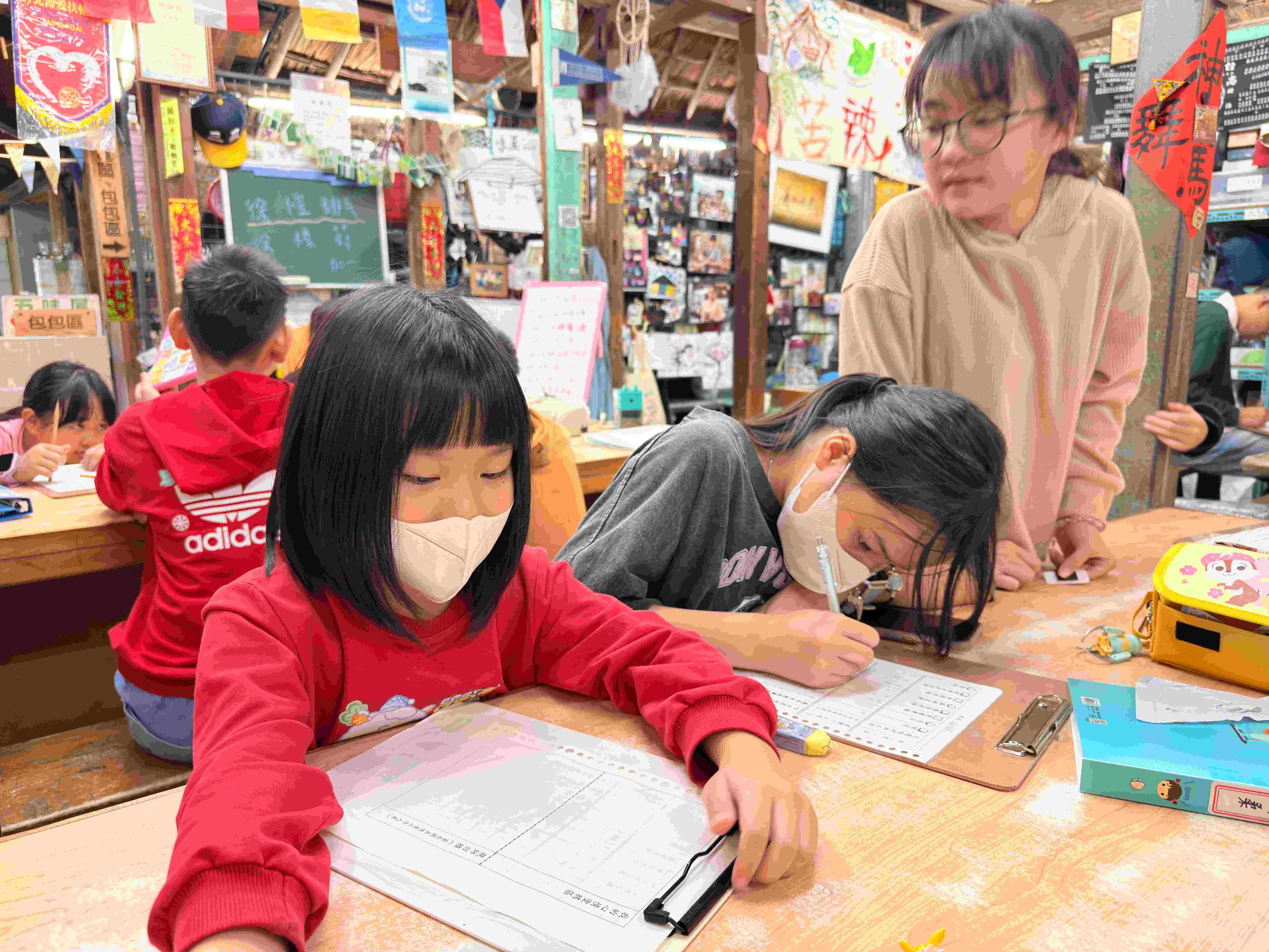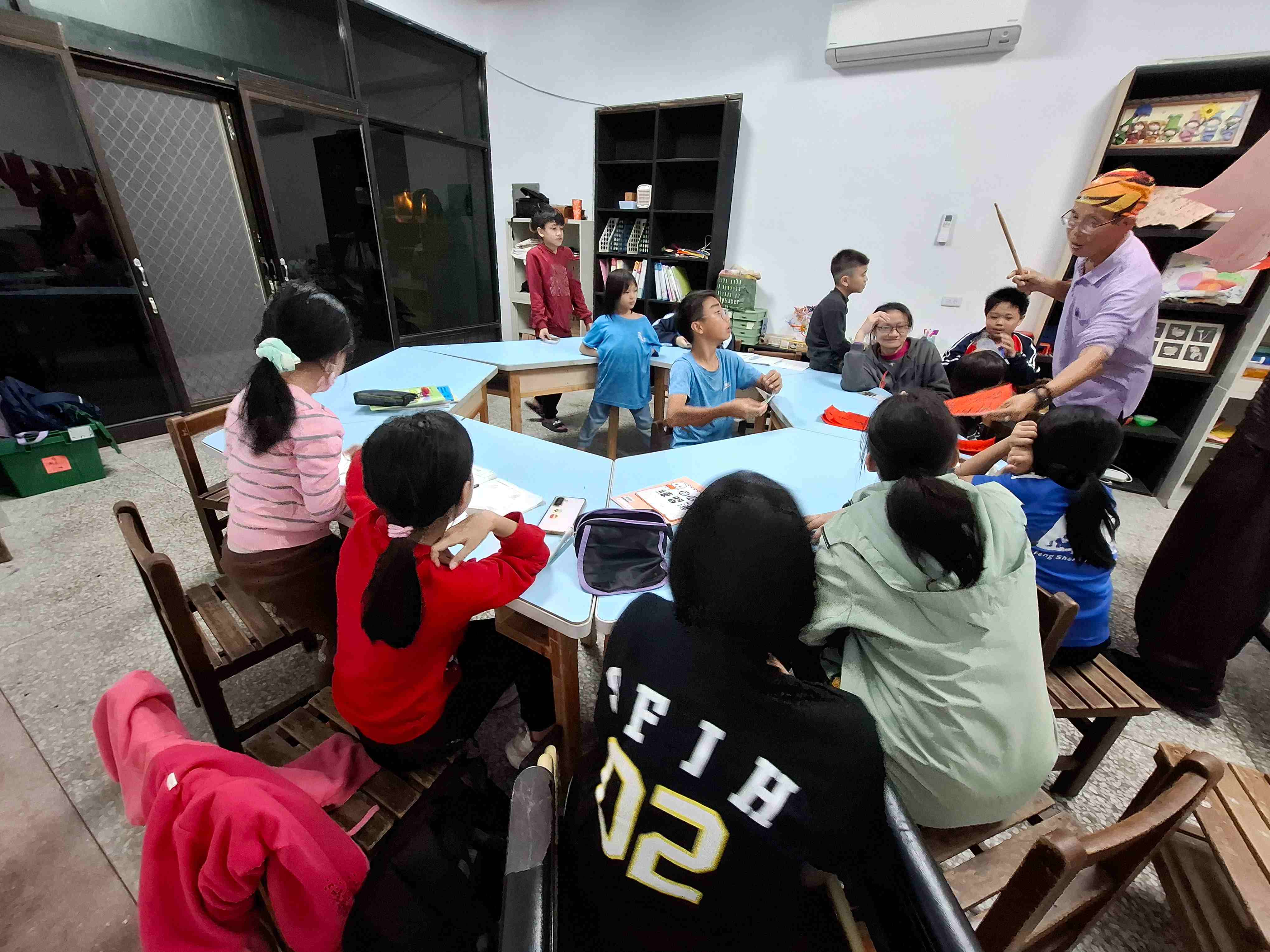 曾經旅居美國多年的玉珠師姐來到1921。師姐擅長英文教學,在夜間照顧陪伴孩子們寫功課。就算孩子不太會英文也沒有關係,師姐總是很有耐心地陪著他們,一起慢慢完成手邊的事情。