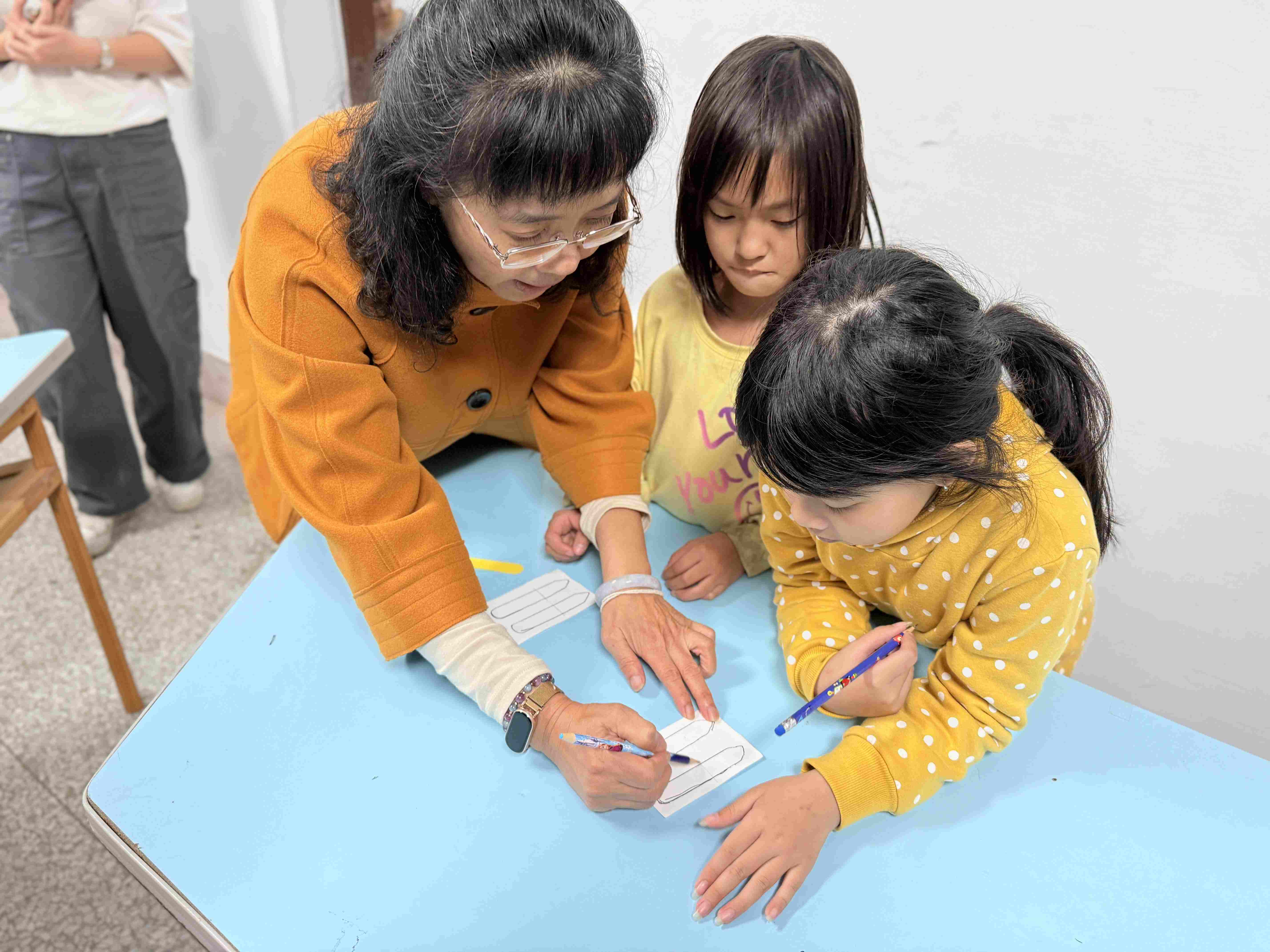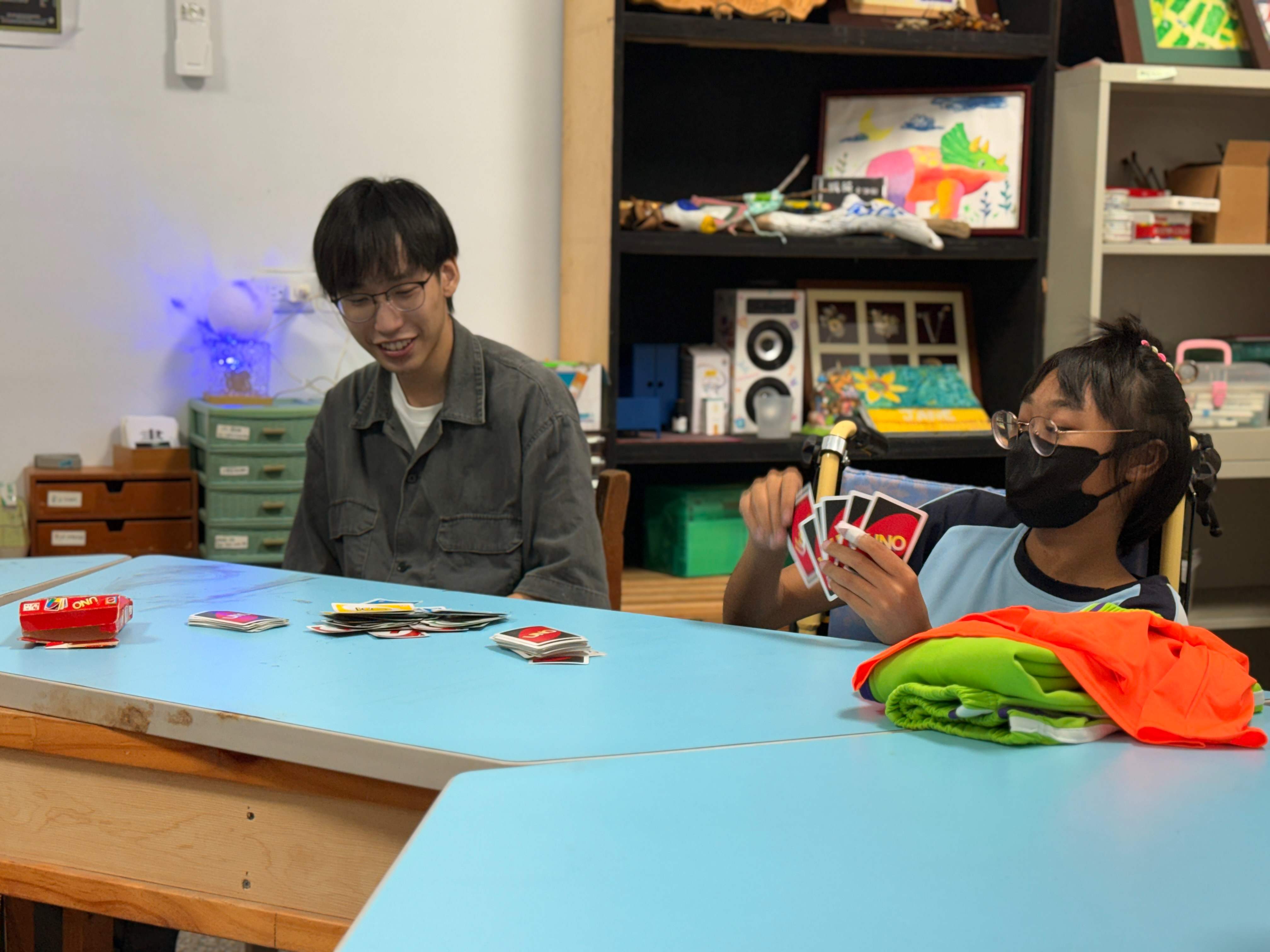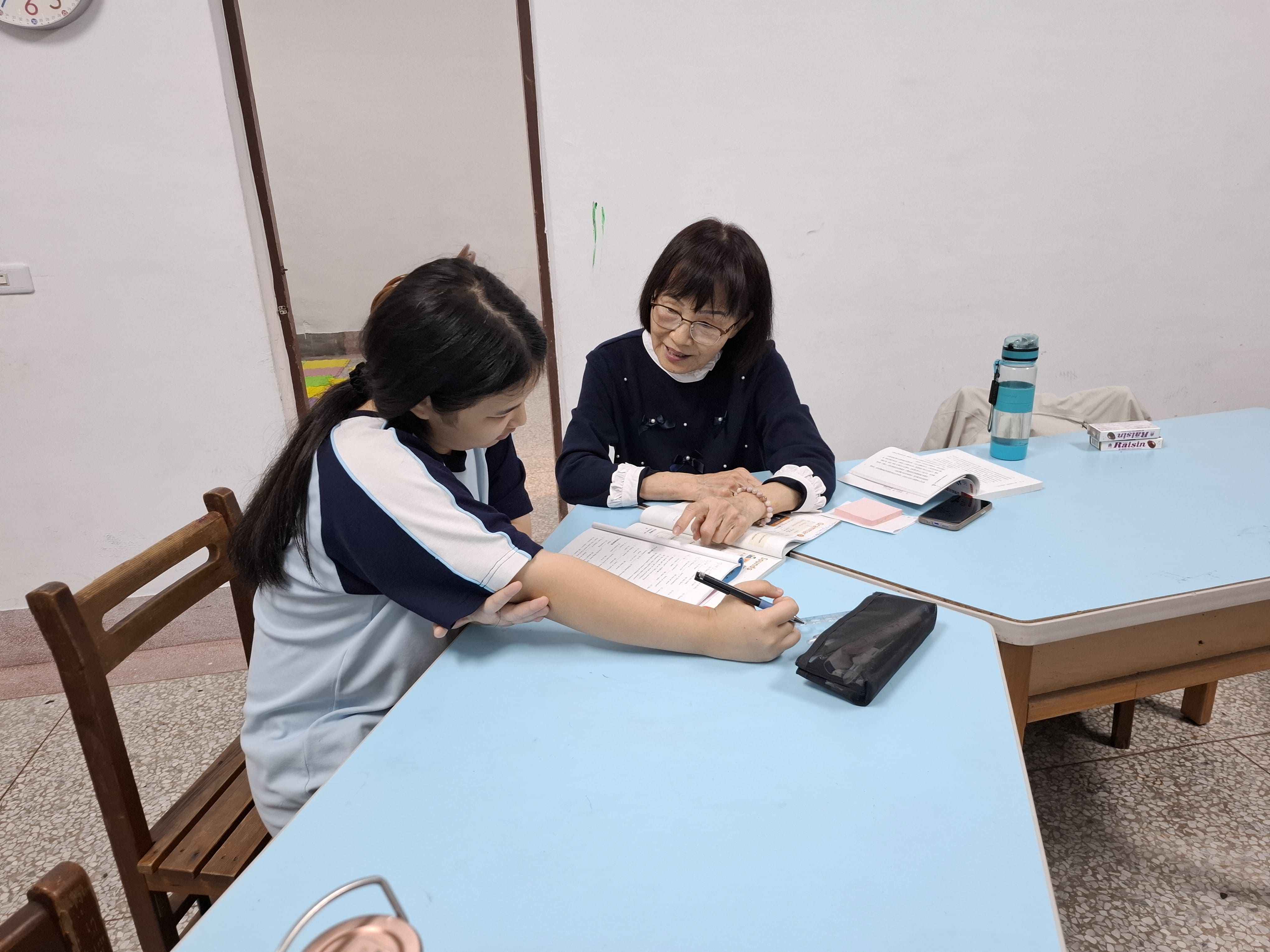 曾經旅居美國多年的玉珠師姐來到1921。師姐擅長英文教學,在夜間照顧陪伴孩子們寫功課。就算孩子不太會英文也沒有關係,師姐總是很有耐心地陪著他們,一起慢慢完成手邊的事情。