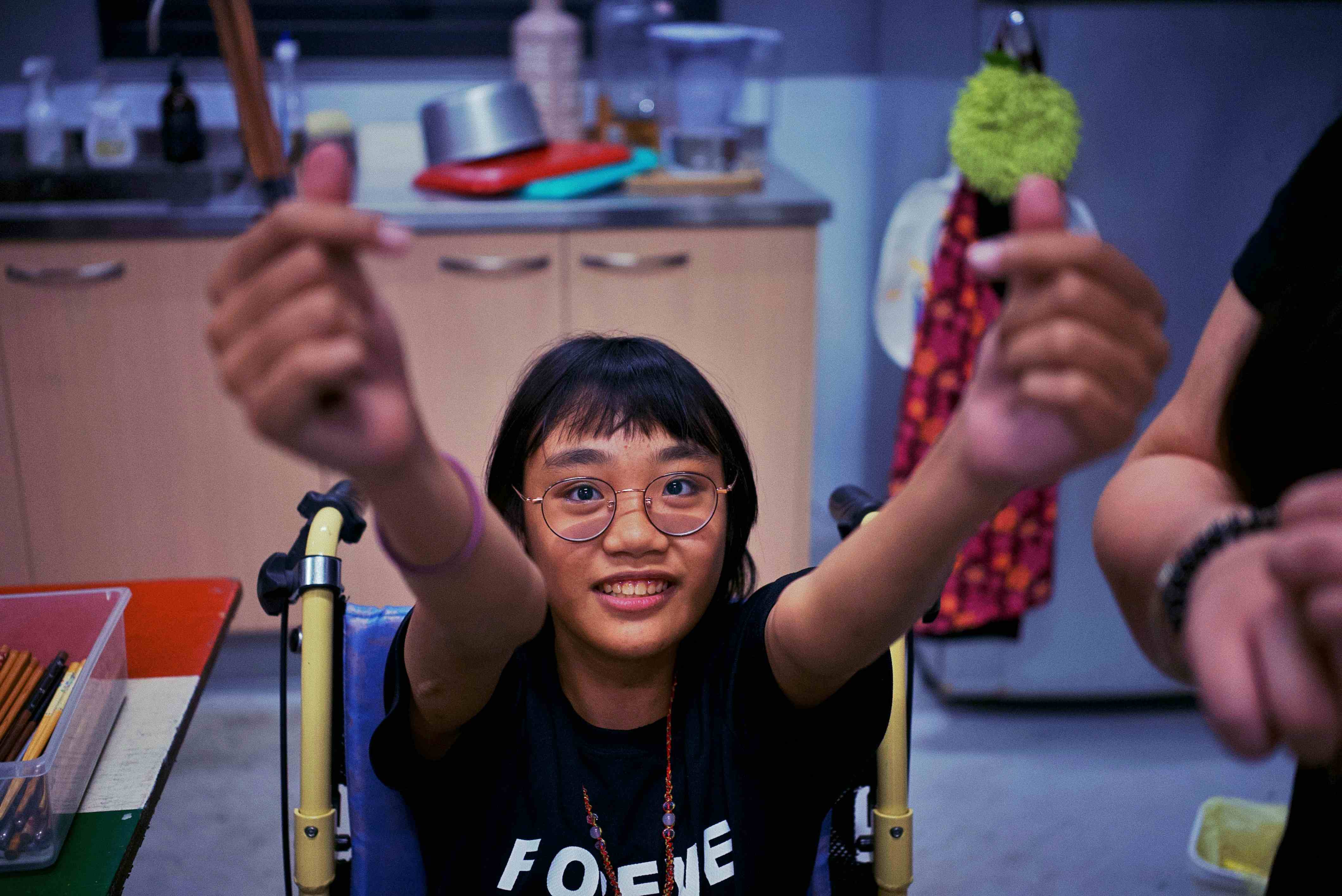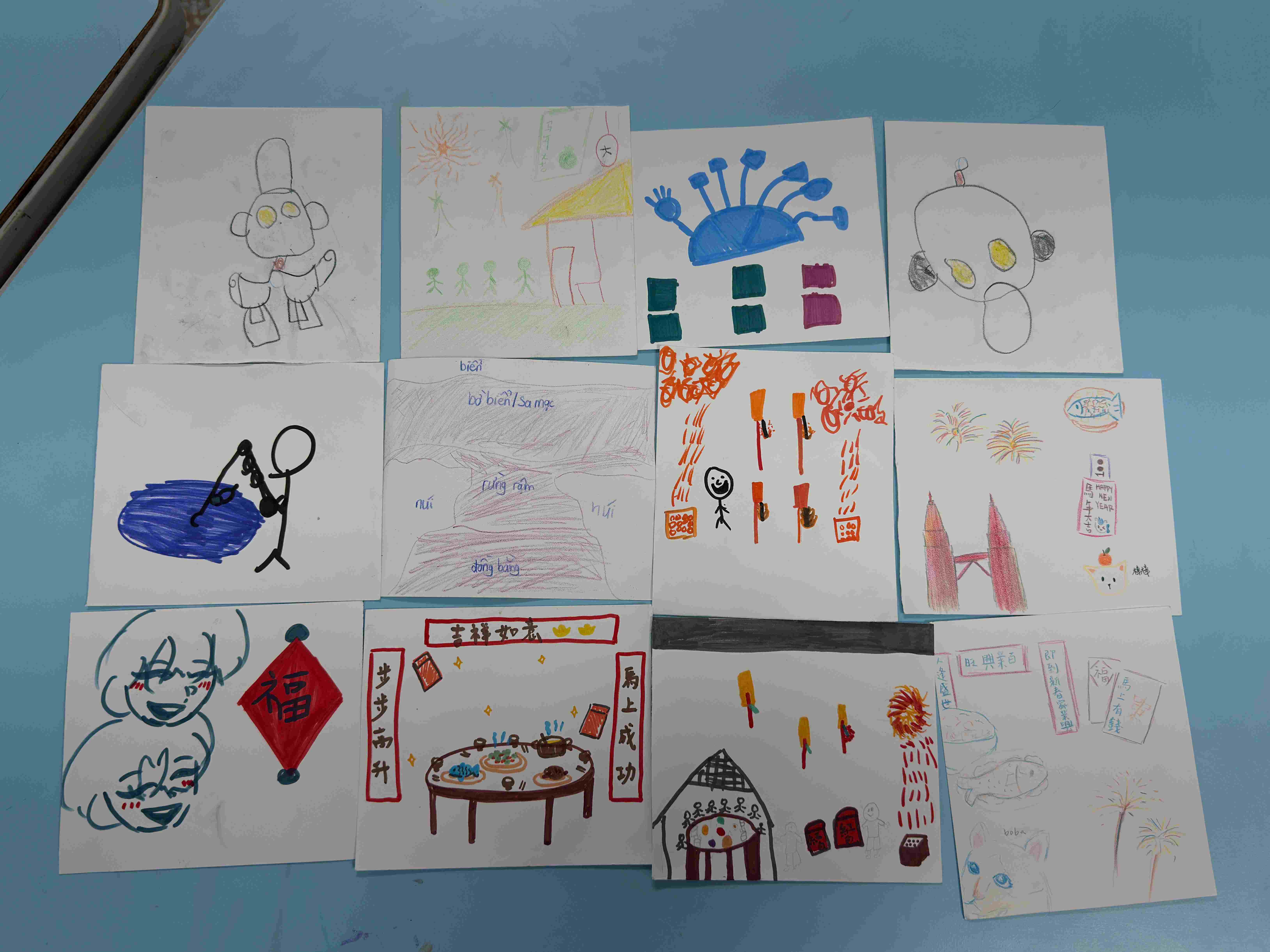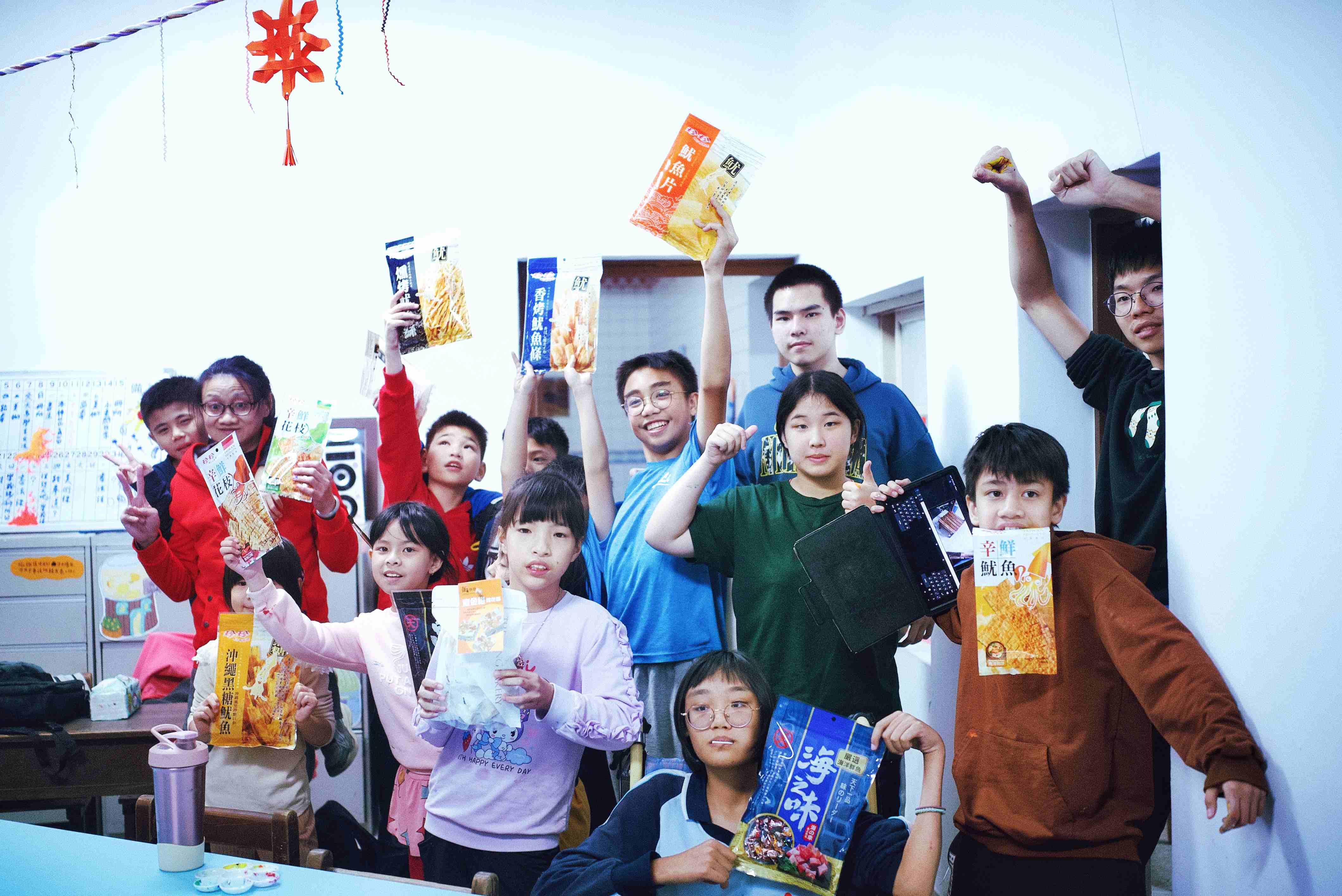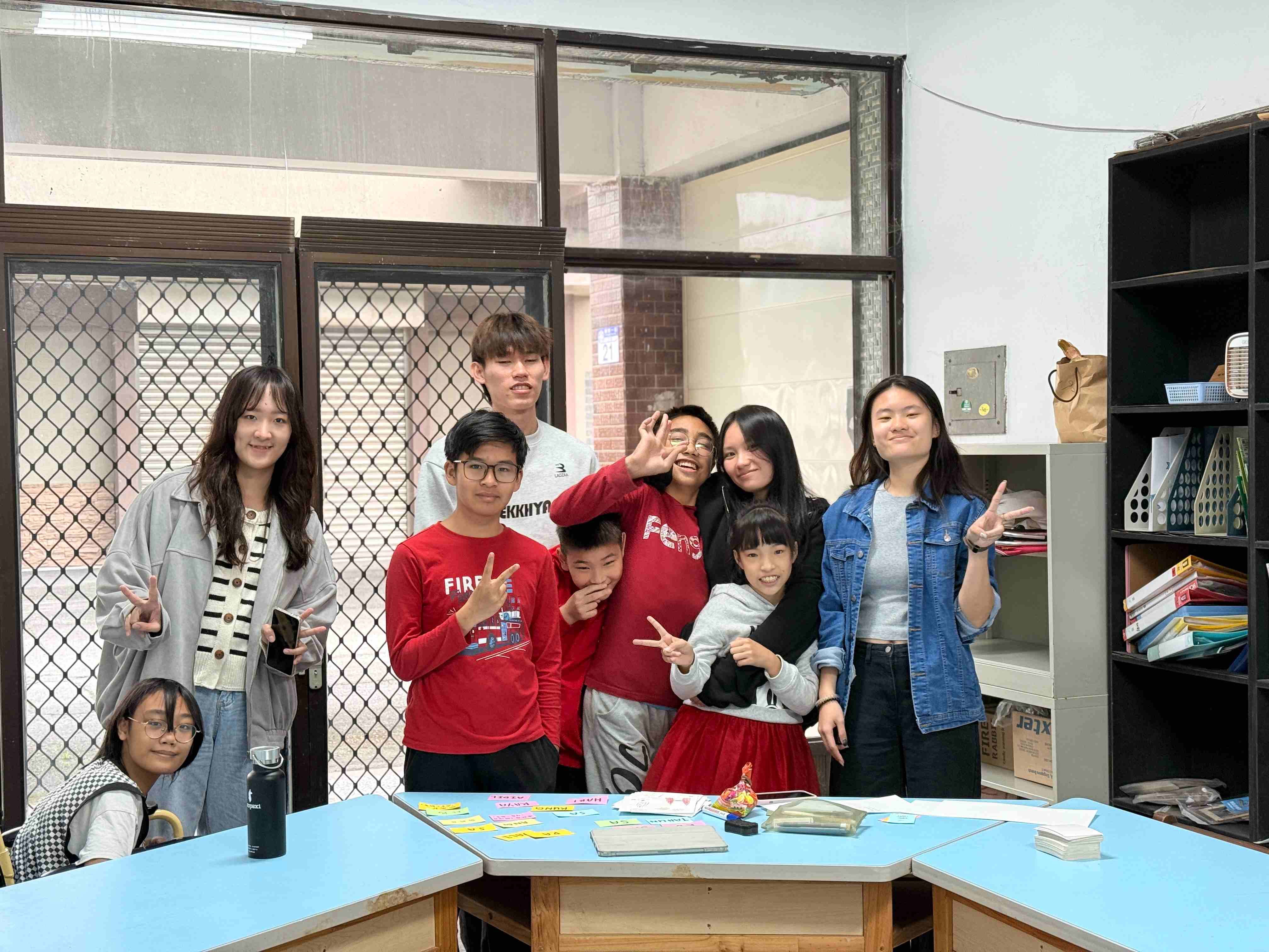 一群來自馬來西亞的學生來到五味屋擔任志工。他們與孩子們分享馬來西亞過年的習俗,也聊起各自家裡過年的樣子。大家圍坐在一起,用聊天的方式輕鬆交流,氣氛十分熱絡。中午時大家還一起吃午餐,孩子們對這群遠道而來的朋友感到十分好奇,也很開心有人願意來陪伴他們。