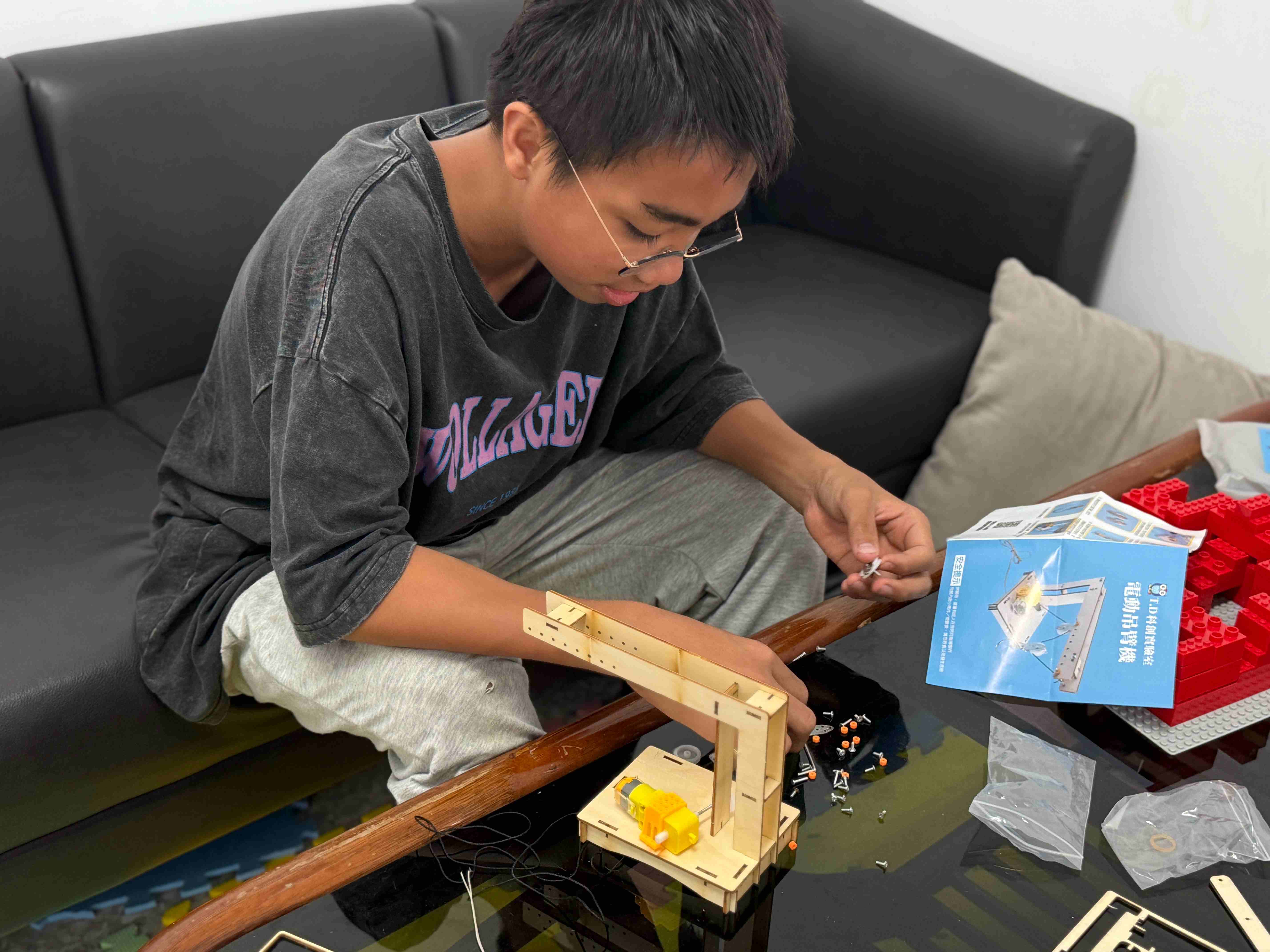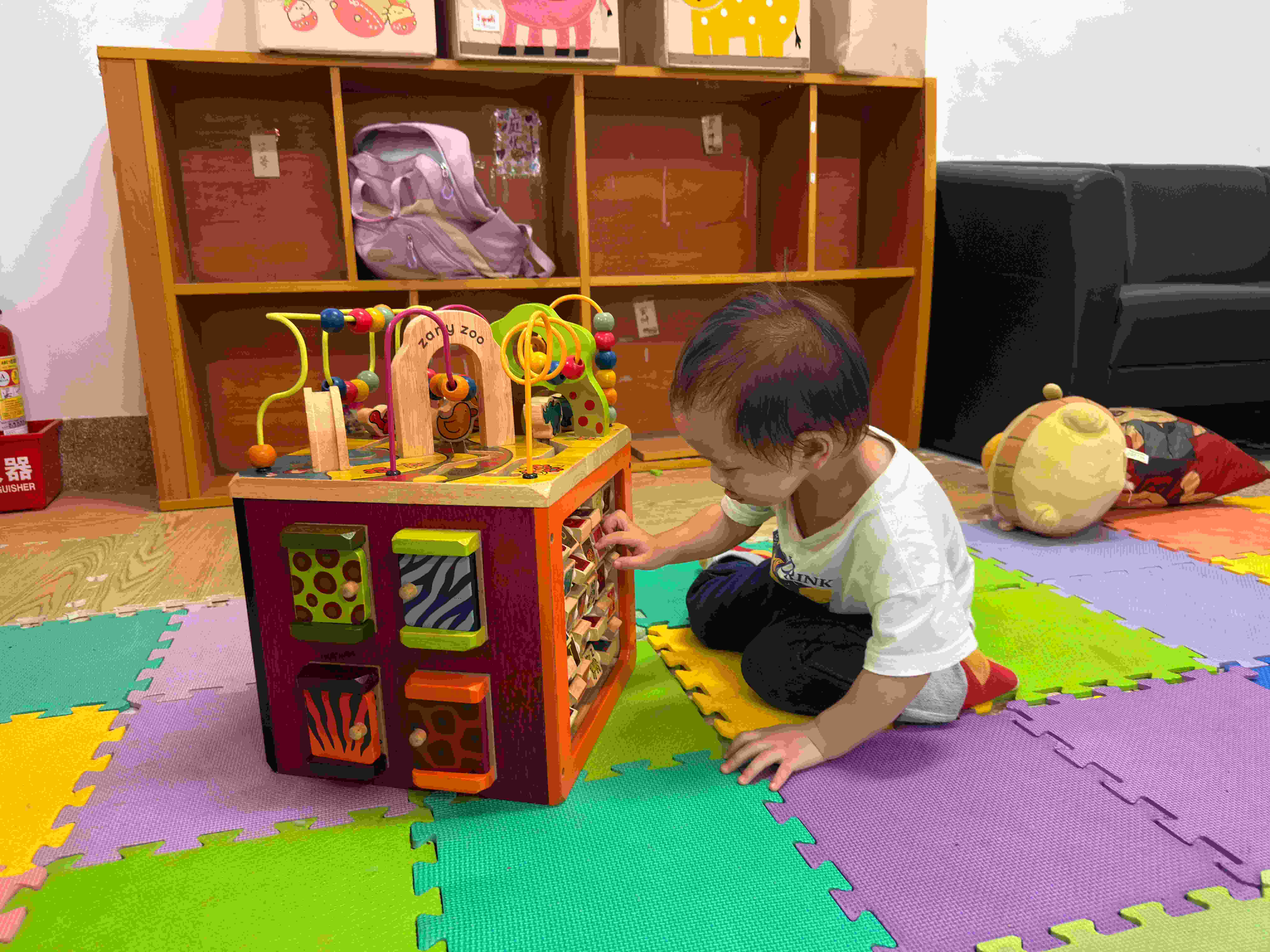 每天一進門就會到達的客廳,孩子們鋪上巧拼,佈置成一個遊戲空間,他們時而在上面玩玩具,時而趴在上面畫畫、聊天,一步一步地打造屬於自己的秘密基地。