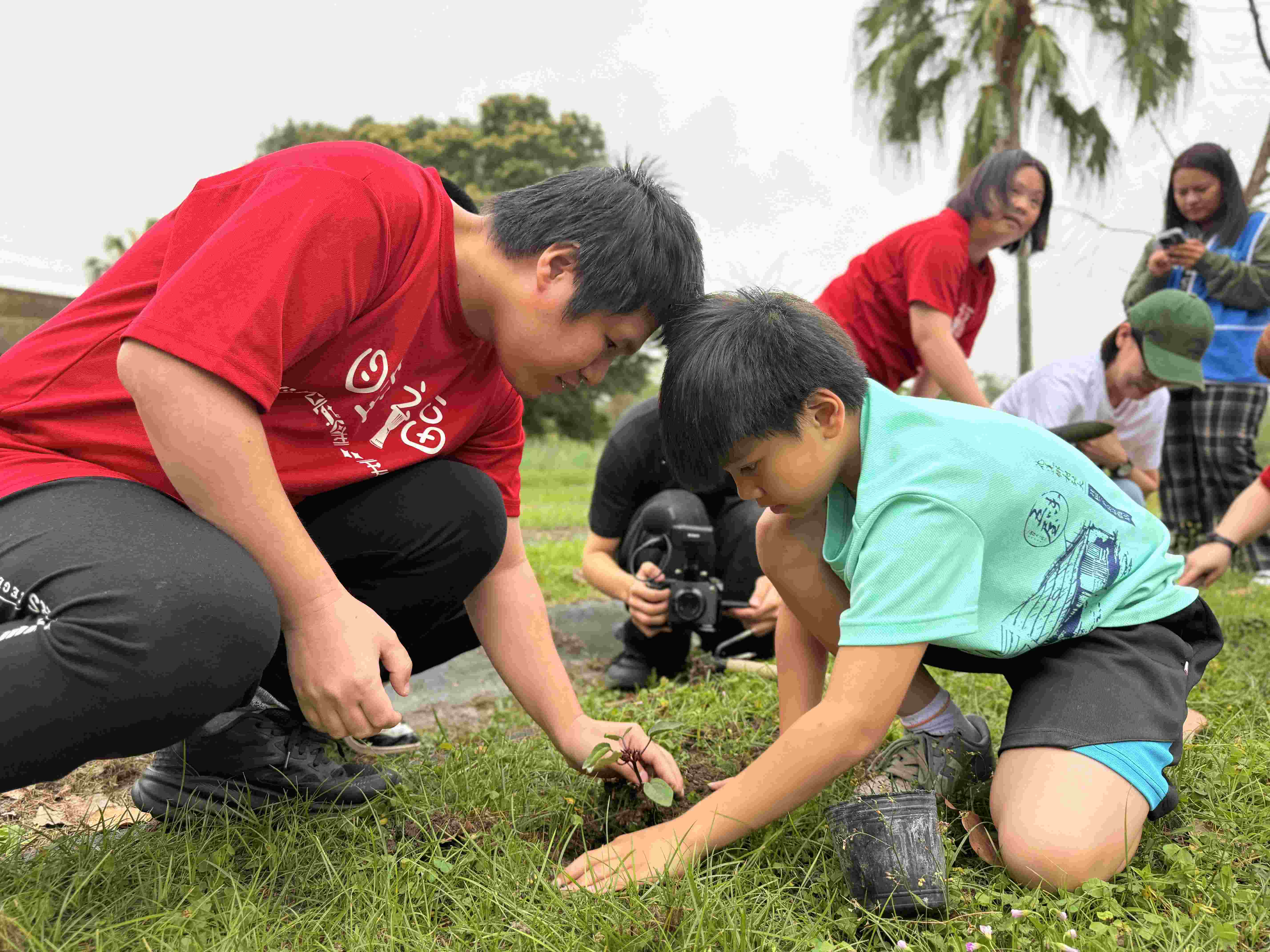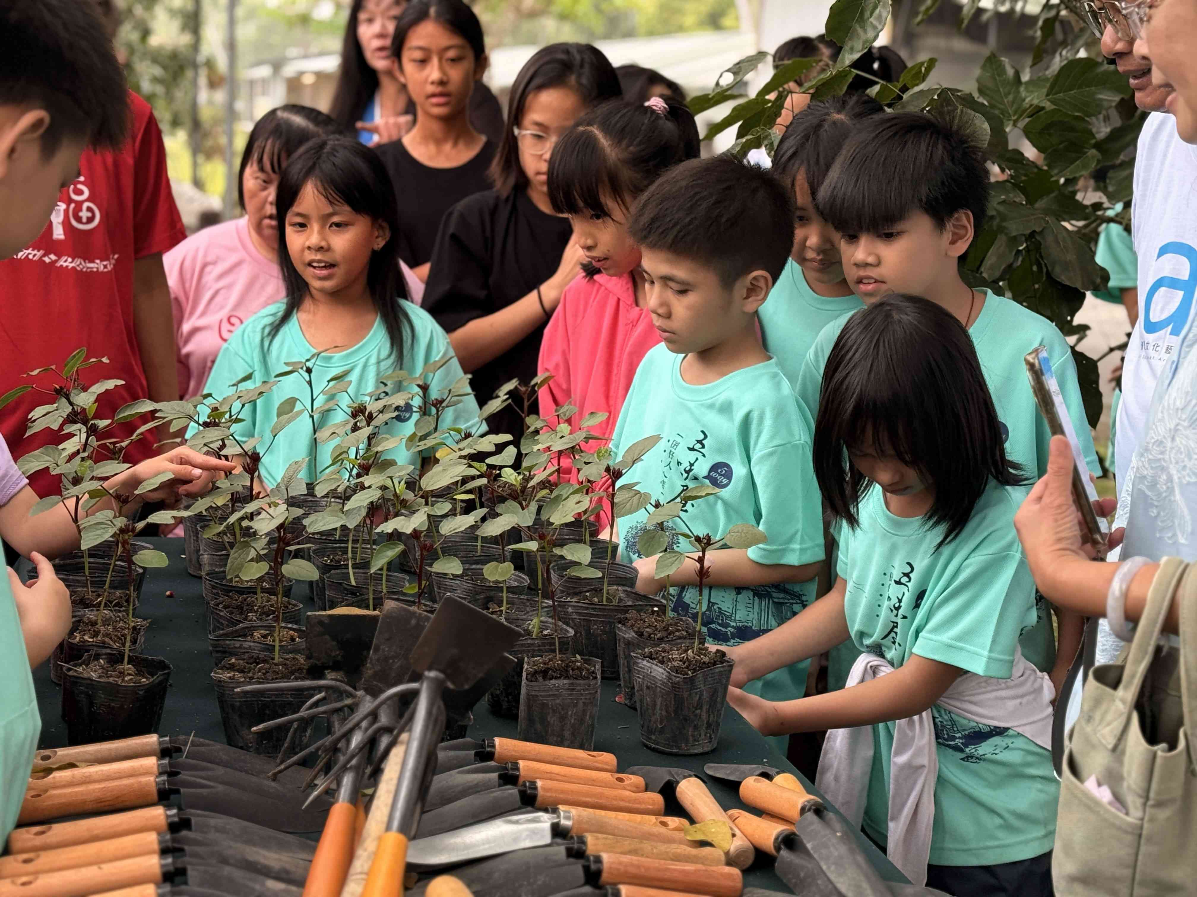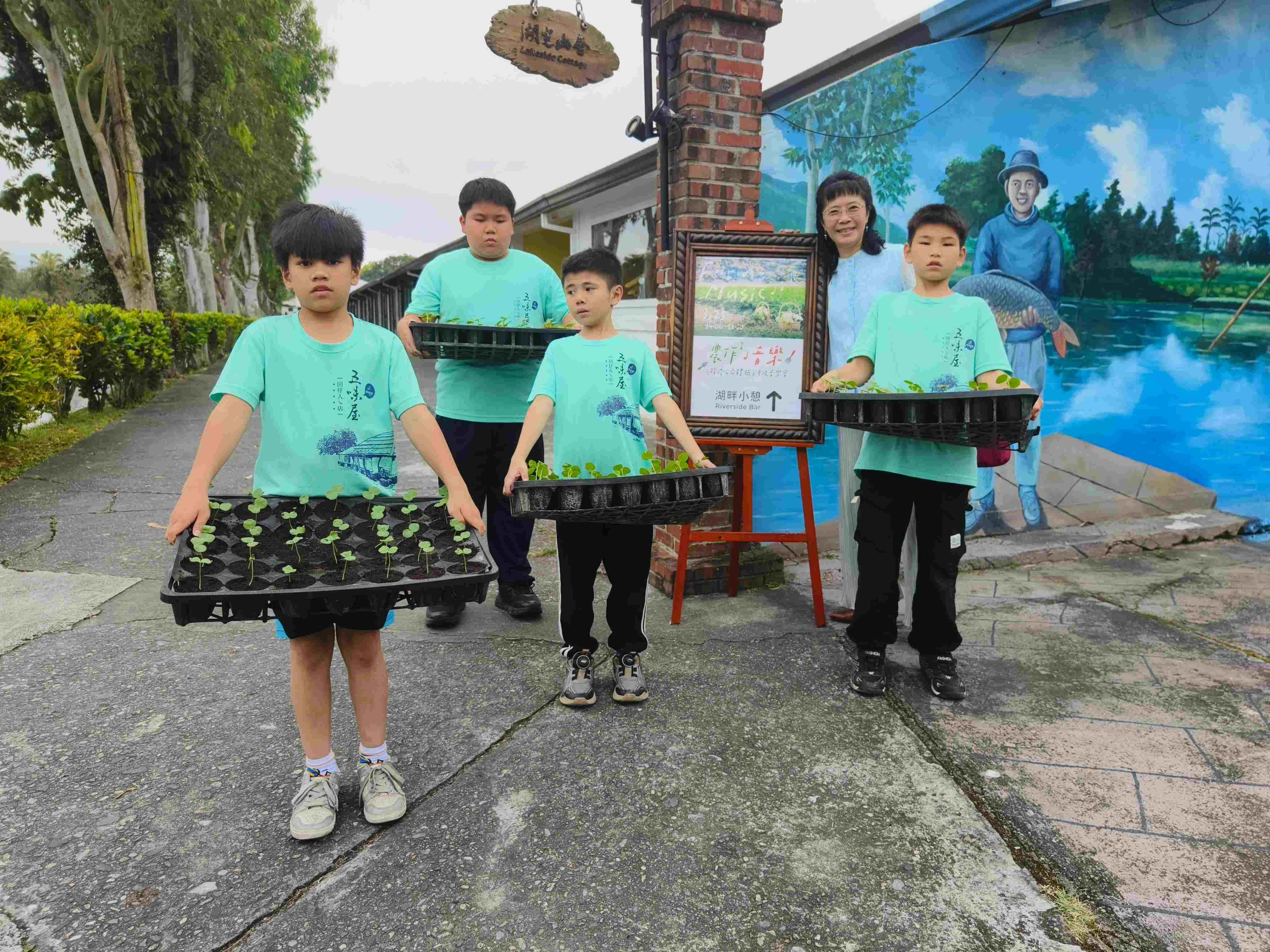本次活動中小老闆要親手將洛神花苗種入土地中,將五味屋課程中的育苗,帶到理想大地播種,孩子們實際參與植物成長的不同階段,也在過程中體驗農作、土地與音樂之間的連結。