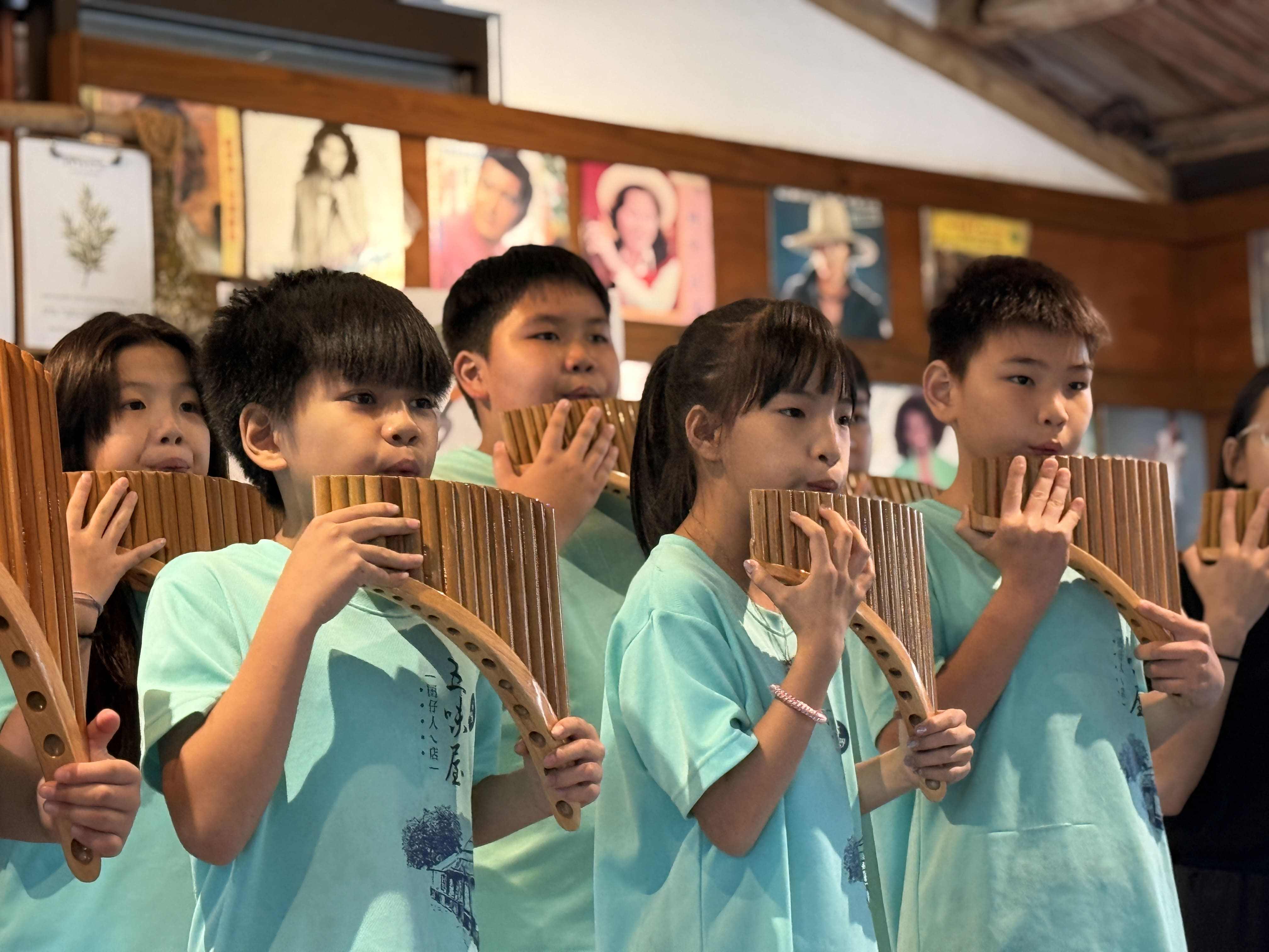 孩子們在湖畔進行音樂演出,將平日練習的成果分享給現場來賓,也與其他團體進行音樂交流。在山與湖交織的環境中,孩子們用排笛吹奏出旋律,也讓這場以農作為起點的學習旅程,多了一層藝術與公共分享的意義。