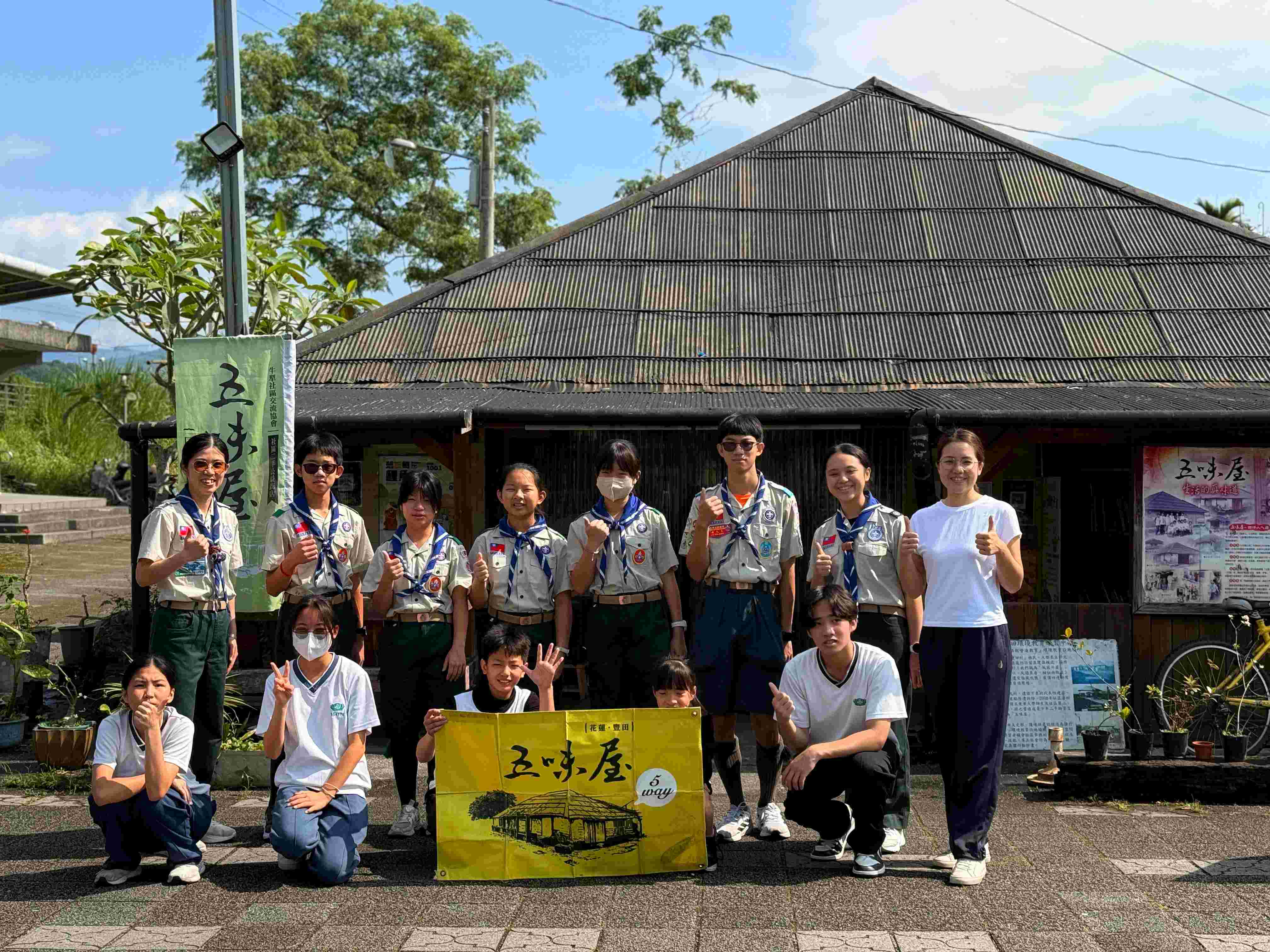 五味屋小老闆與豐裡國小排笛隊的孩子們,受邀前往花蓮壽豐理想大地「湖畔小憩」,參與由雅理文化藝術基金會主辦的「農作與音樂」公益活動。本次移地學習結合食農體驗與音樂表演,讓孩子走出日常場域,在自然環境中認識土地,也透過音樂回饋社會。而這次活動的另一個重要主角,正是三月開始在五味屋課程中持續被認識與照顧的——洛神花。